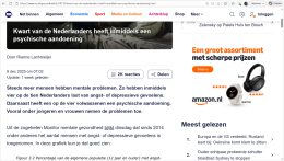 Steeds meer mensen hebben mentale problemen. Zo hebben inmiddels vier op de tien Nederlanders last van angst- of depressieve gevoelens. Daarnaast heeft een op de vier volwassenen een psychische aandoening. Vooral onder jongeren en vrouwen nemen de problemen toe.